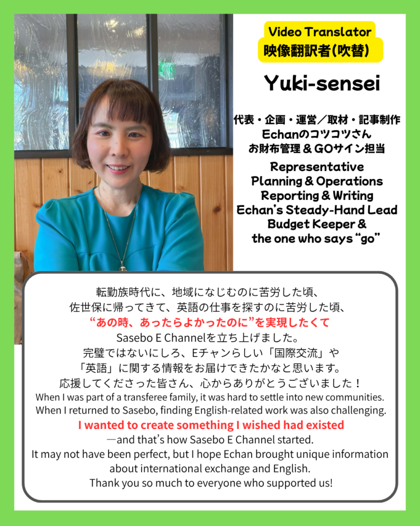 As of March 31, Yuki-sensei and Rie-sensei will be graduating from Sasebo E Channel 🌸