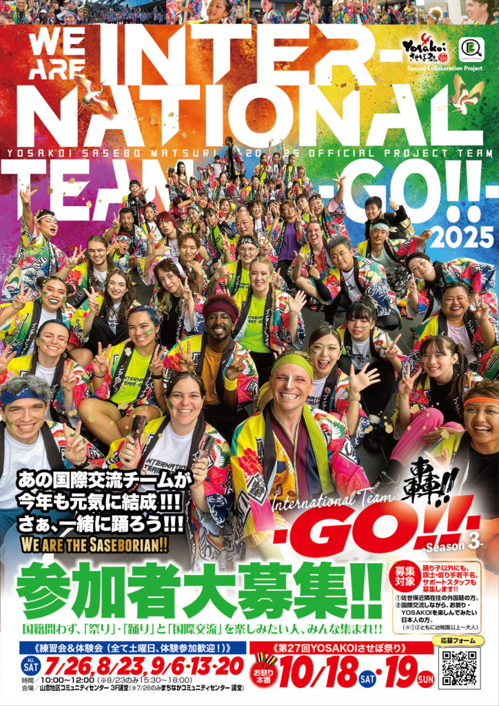 YOSAKOIの国際交流チーム「インターナショナルチーム-GO!!-」のメンバー募集が始まりました!3期目の今年は、新曲にチャレンジ!みんなで一からスタートなので、初心者さんも不安なく始められます。一緒に振り付けを覚えて10月18日、19日の「第27回YOSAKOIさせぼ祭り」で一緒に踊りましょう!
